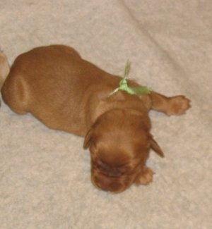 She's the darkest and reddest of the pups. She went to live with our vet, Dr. Andrea